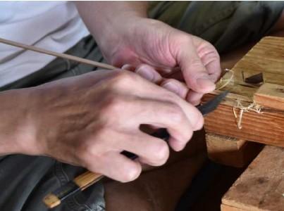 本製品に用いられている伝統技法「駿河竹千筋細工」の全ての工程は、材料となる竹を特定の産地で、丁寧に手入れをしながら育てるところから始まります。苦竹(まだけ)、孟宗竹(もうそうちく)と呼ばれる竹を最低2 - 3年成長させます。節と節の間が長く、まっすぐな竹となったところを見極めた後に、伐採され、油抜き、乾燥という工程を経てはじめて、駿河竹千筋細工の素材となります。
